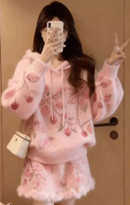 In today’s fast-paced world, knitwear sets have become an indispensable fashion staple for lazy girls and busy professionals alike, all thanks to their effortless coordination and one-and-done styling. No more wasting time staring at the closet, trying to mix and match tops and bottoms—with a well-designed knit set, you can step out in a polished, put-together look in minutes. And when it comes to combining cuteness with convenience, the cherry embroidered knit set takes the crown, blending playful charm with all-day comfort for any occasion.